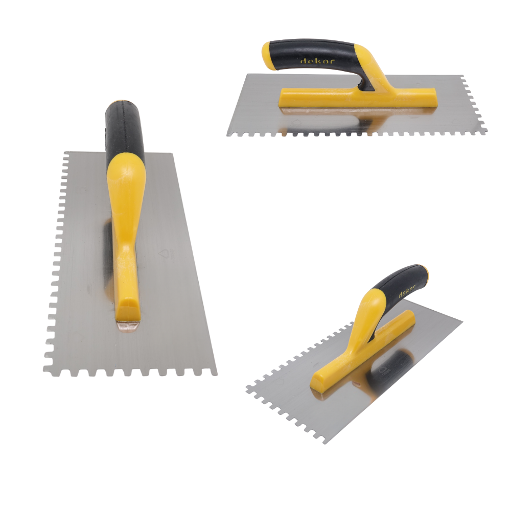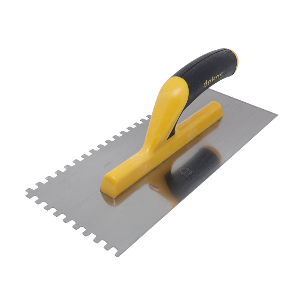 Glättekelle Gezahnt mit quadratischer Zahnung und offenem Kunststoffgriff – Für präzise Fliesenverlegung