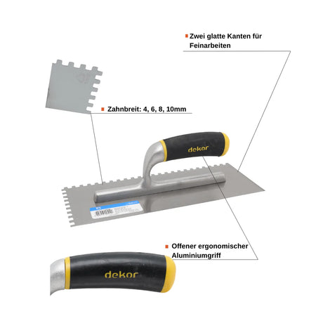 Rostfreie Zahnkelle, Glättekelle gezahnt 380 mm x Zahnung (6-8-10-12mm)