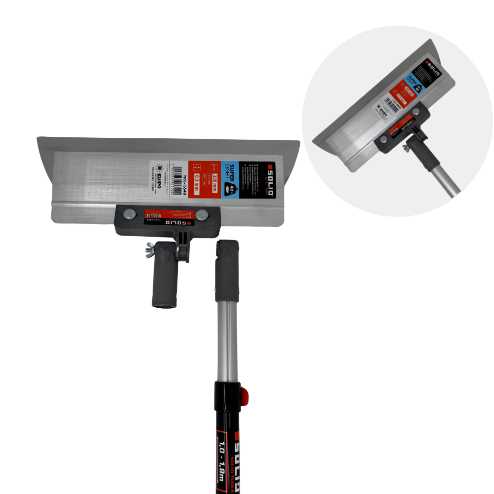 Stabiler und ergonomischer Stiel mit Teleskopfunktion. Die Länge lässt sich individuell anpassen – für rückenschonendes Arbeiten ohne Leiter.