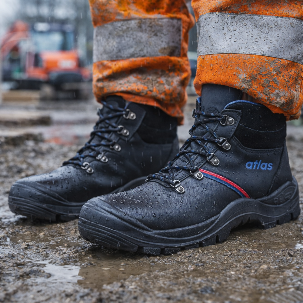 Ob nasse Untergründe, unebenes Terrain oder herausfordernde Witterung – besonders im Außeneinsatz spielt die Wahl der richtigen Laufsohle eine zentrale Rolle. Die Outdoor-Sohlentechnologie von ATLAS® sorgt für optimale Vorbereitung: Flexibel gestaltete Profilblöcke gewährleisten sicheren Bodenkontakt und maximale Haftung. Das grobstollige Profil mit 4,5 mm Tiefe reduziert effektiv das Risiko von Rutschunfällen auf feuchten oder glatten Flächen.