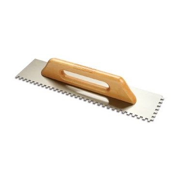 Zahnglätter : Im Vergleich zur klassischen Zahnkelle hat der Zahnglätter meist kleinere Zähne und dient eher zur Feinverteilung von Klebstoffen.